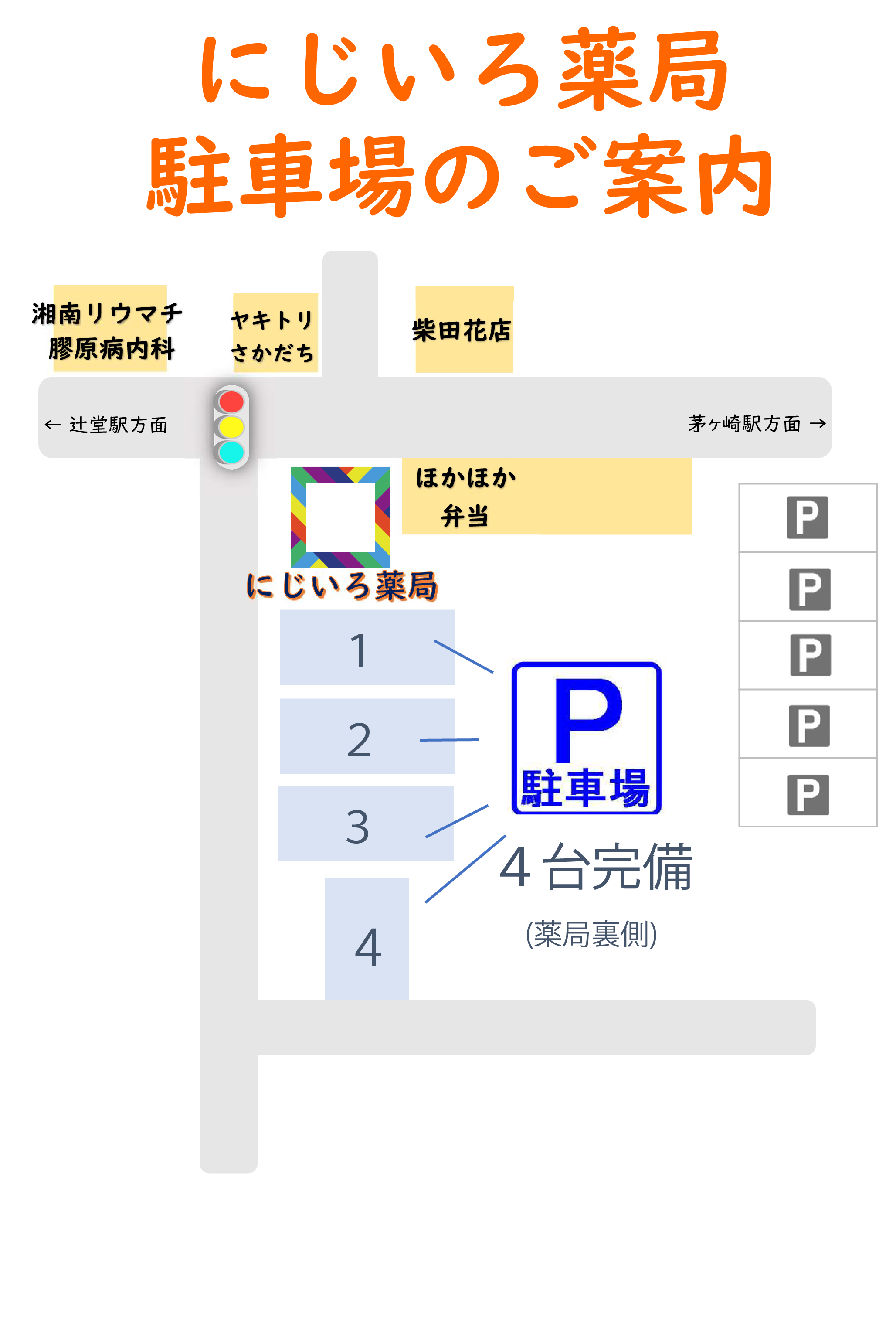 平素よりにじいろ薬局をご利用いただきまして、誠にありがとうございます。薬局をご利用の際は、建物裏の駐車場4台をご利用ください。どうぞよろしくお願いいたします。